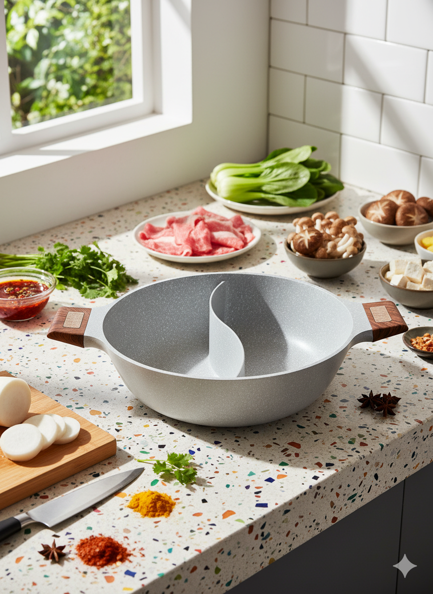 Satisfaites tous les goûts à table ! La casserole divisée permet de préparer simultanément deux plats différents, assurant que chacun à table trouve son bonheur.
