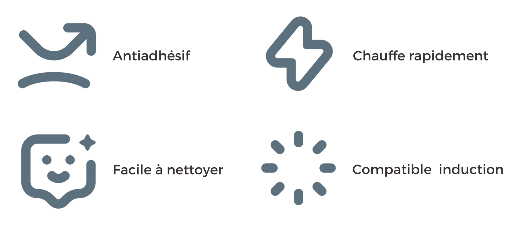 • Utilisez un feu doux-moyen pour préserver le revêtement antiadhésif – ne chauffez jamais une poêle vide.